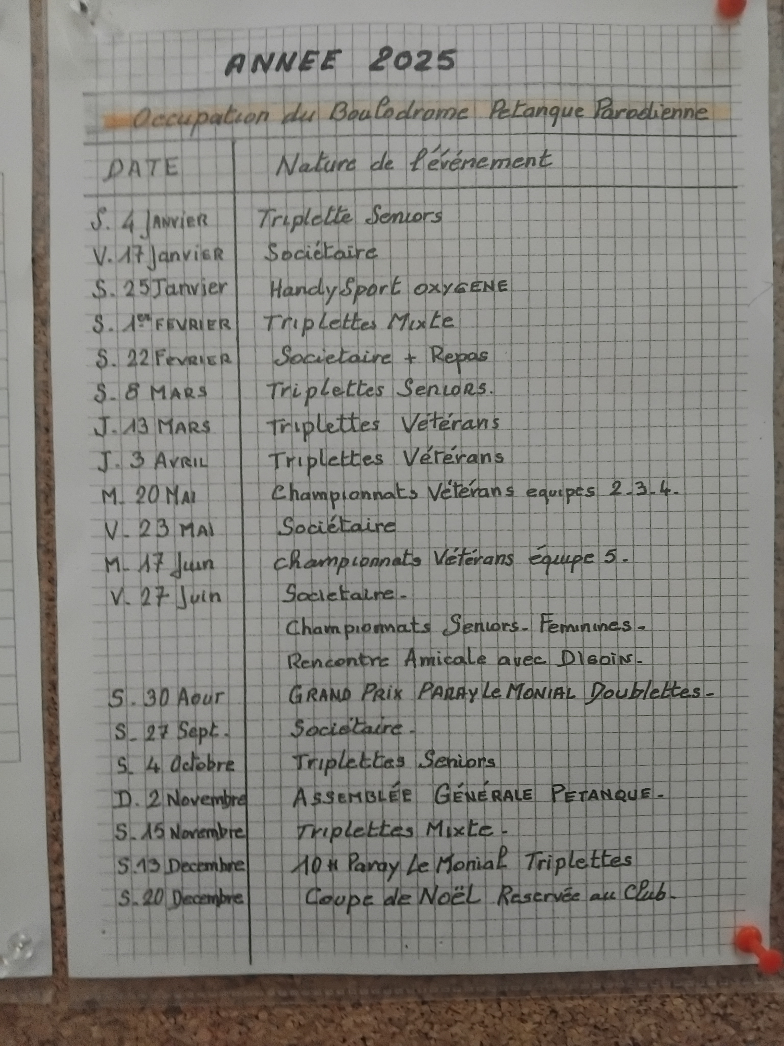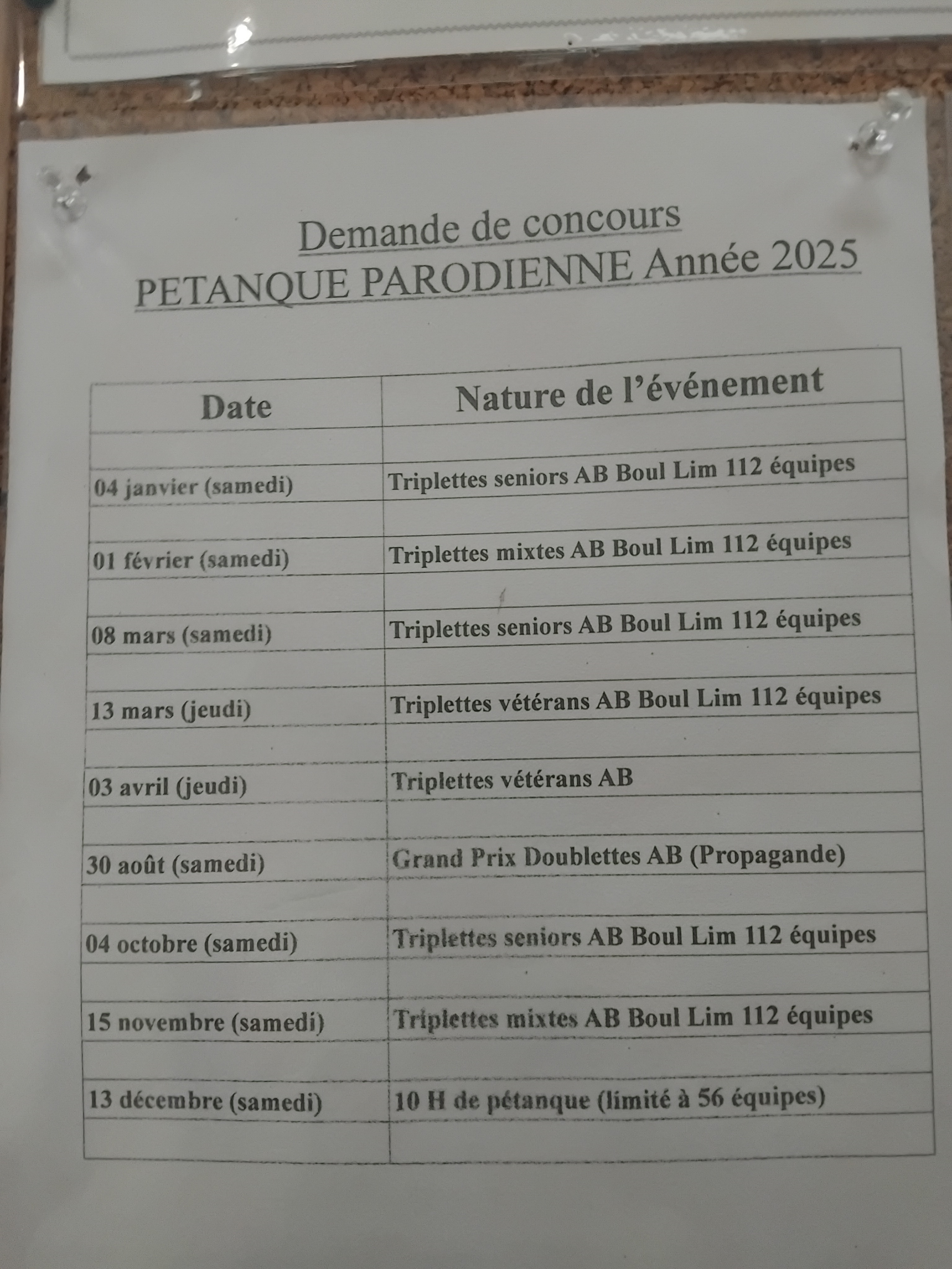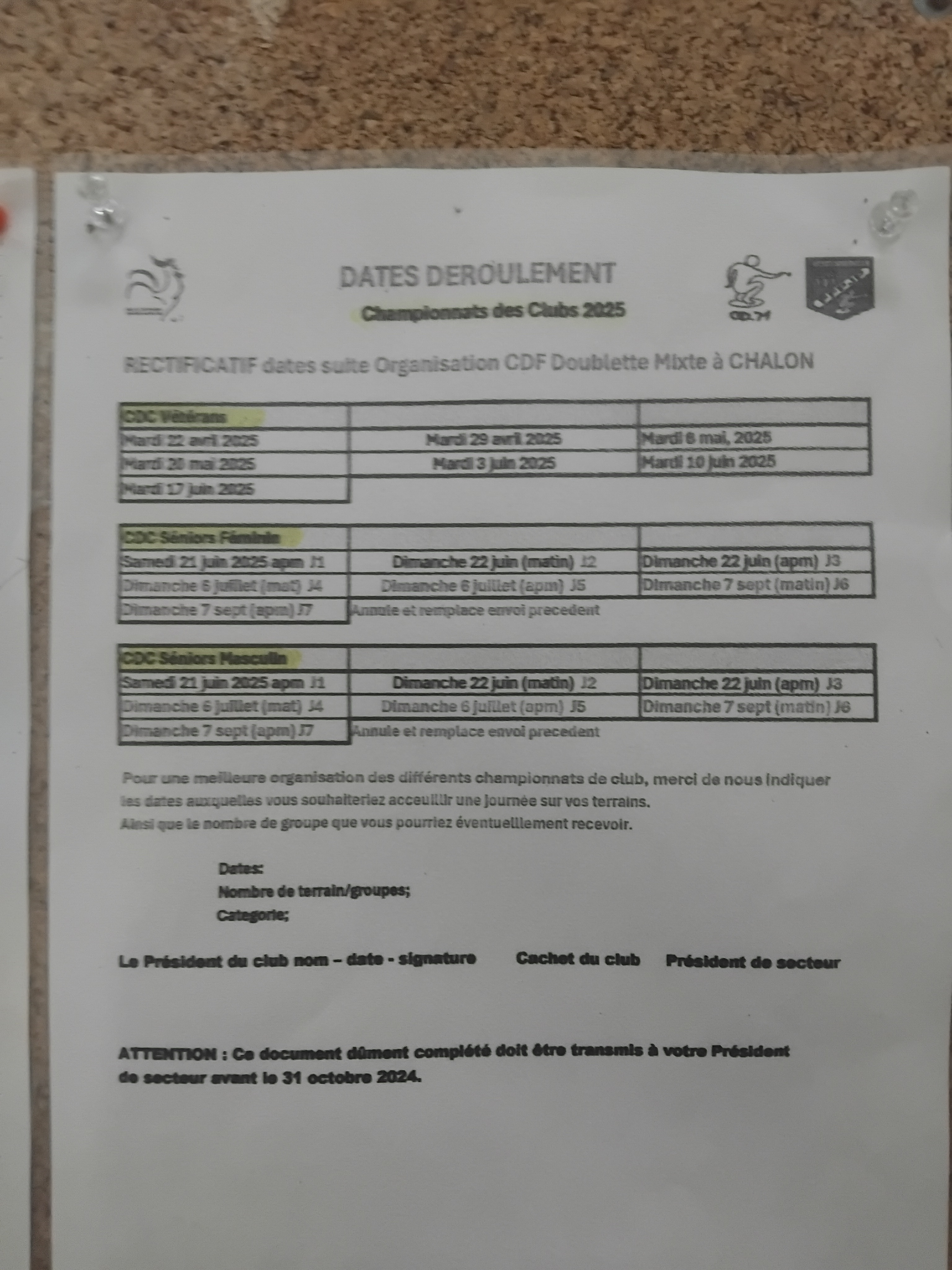 Voir les documents joints: (boulodrome Paray + Cal. Champ. des Clubs)